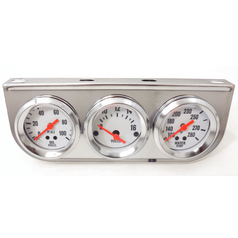 Kit de manómetro triple cromado de 2″ con presión de aceite, voltaje y temperatura del agua