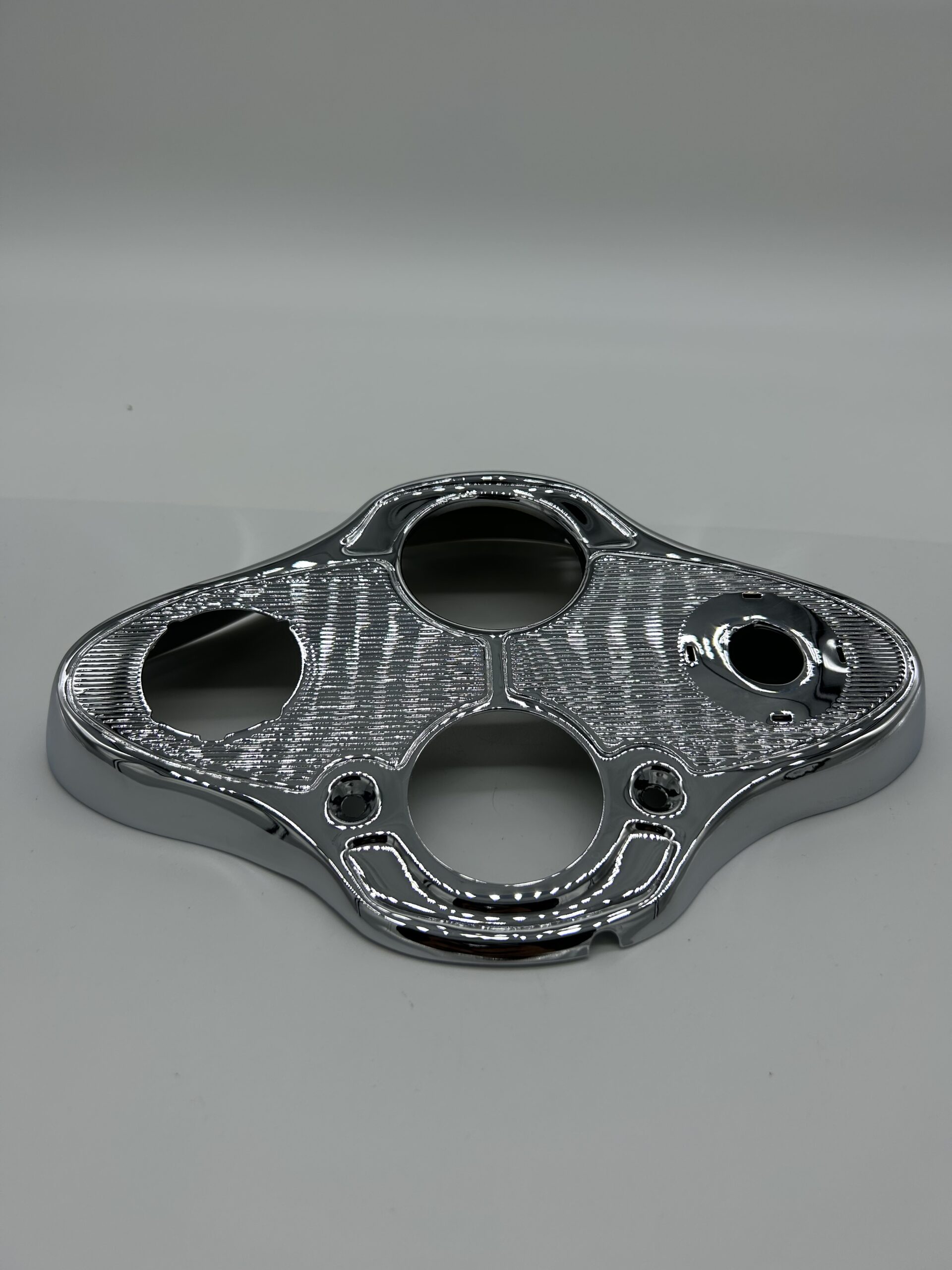 Panel de gran calidad con cromado visible, con tornillos de montaje.