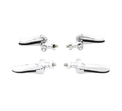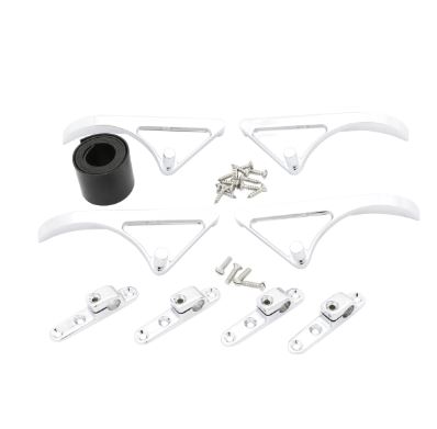 Soportes/abrazaderas cromados para el cristal del parabrisas. Incluye tornillos, gomas para vidrio y patrones de vidrio.