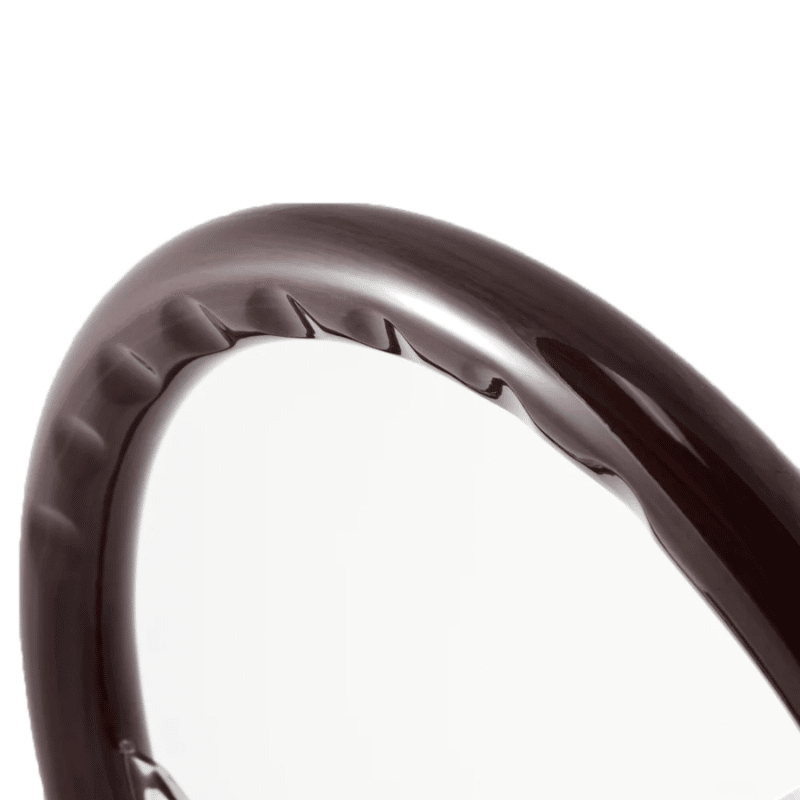 Este hermoso volante de madera tiene una magnífica empuñadura de caoba frotada a mano y radios ranurados cromados.